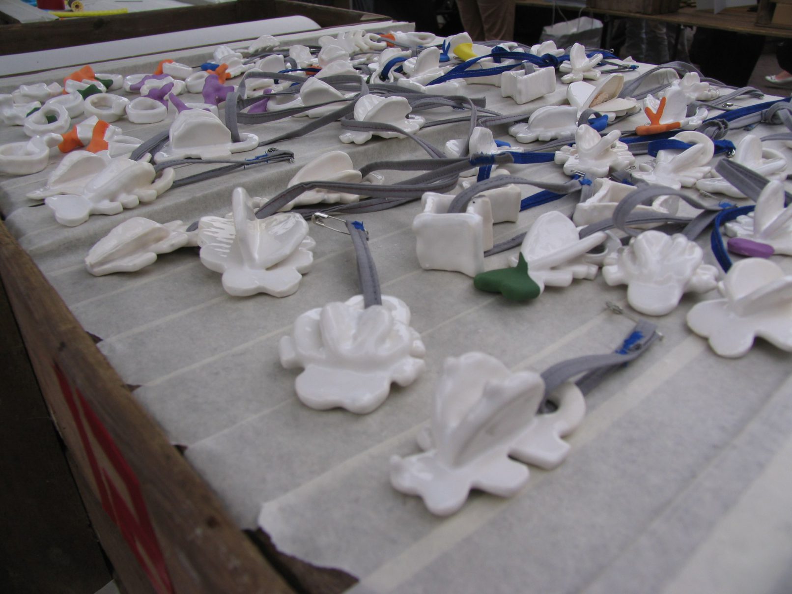 For this occasion we invented the flexible machine. An installation and production line to make the process of the flexible ceramics accessible and understandable. We produced small wearable accessories, jewelery that expresses the materiality and possibilities of the technique.
