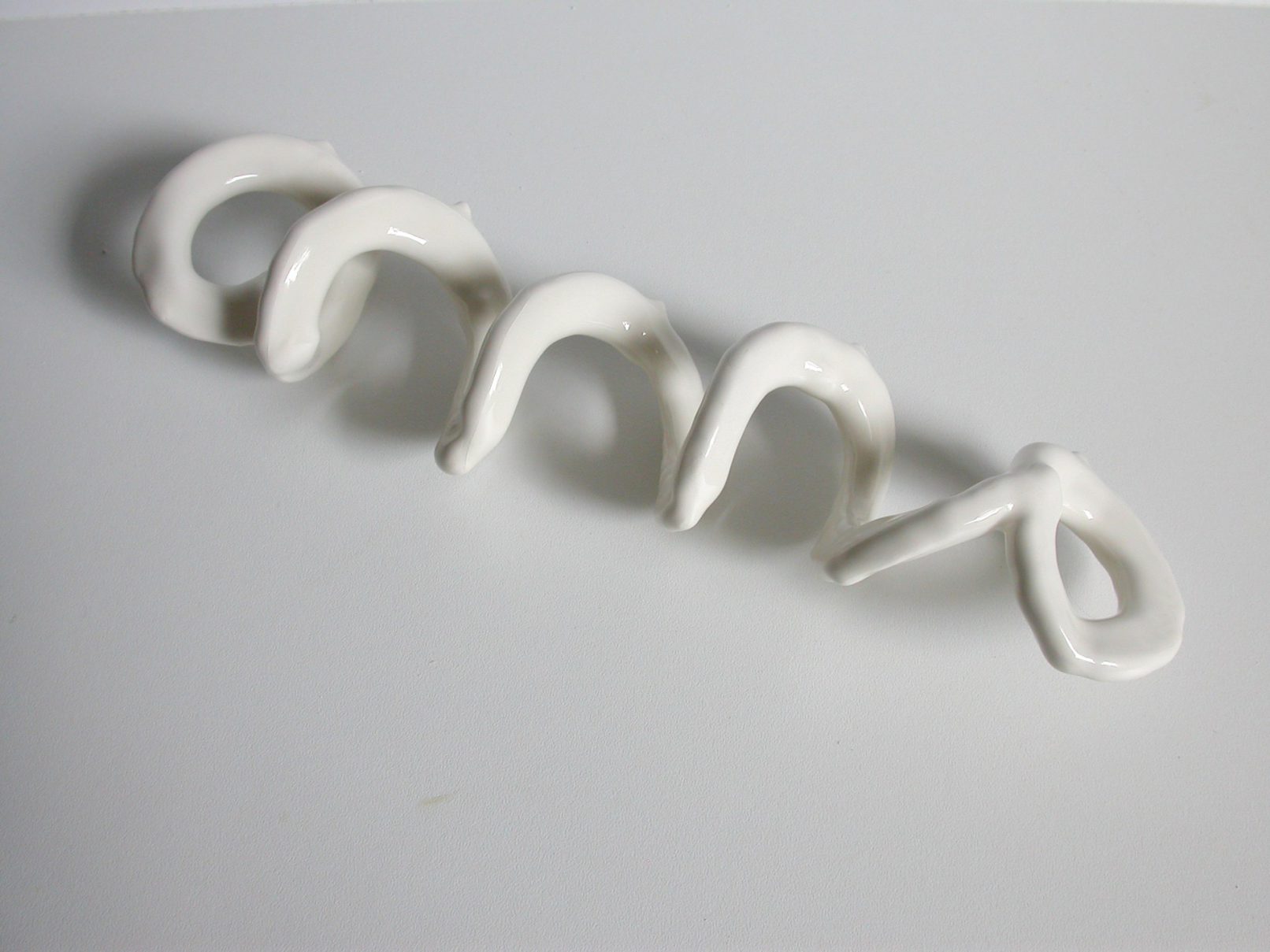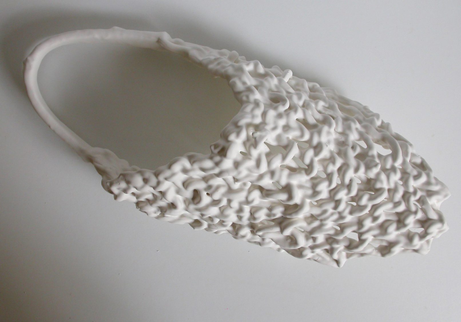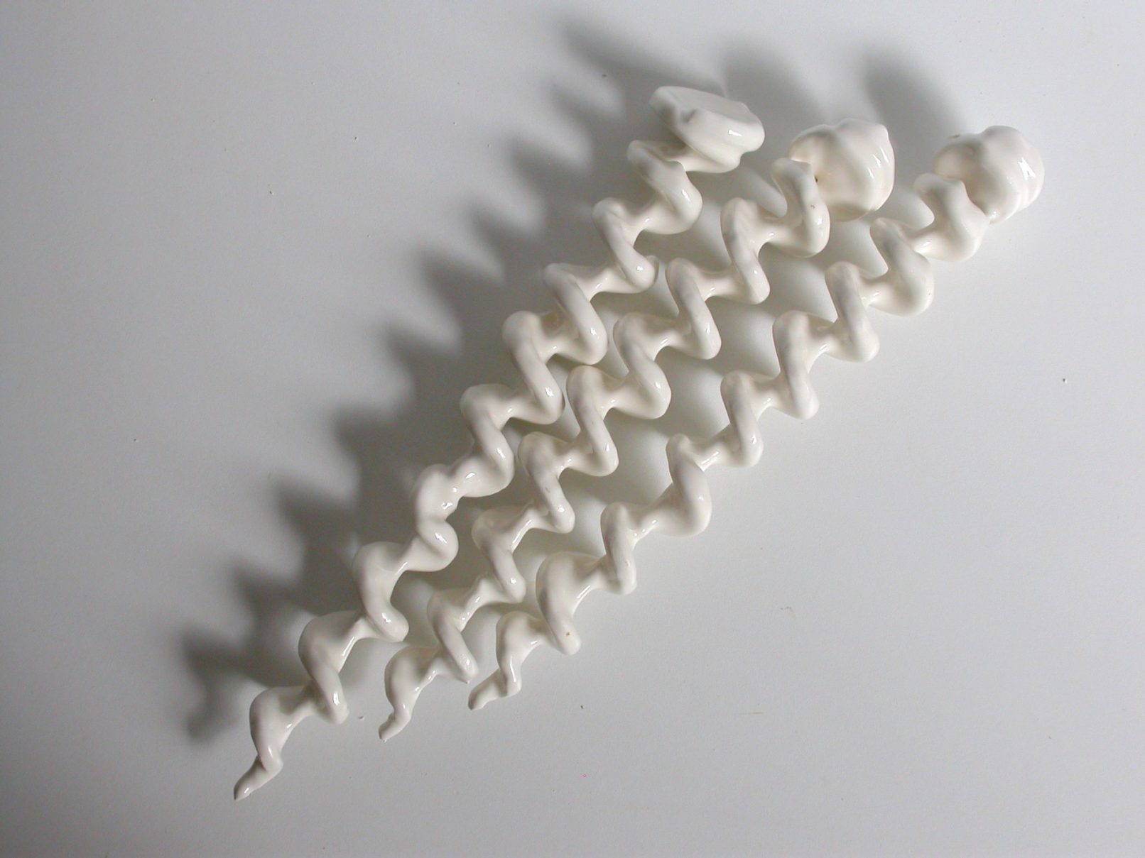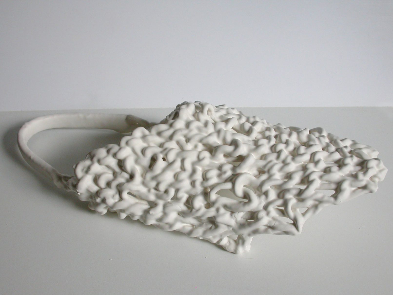 Fashion accessories in collaboration with Connie Groenewegen an Amsterdam based fashion designer. The accessories where worn during the Amsterdam fashion week 2009. The shapes where mainly made using knitting or very simple shapes that are formed during the making process of the ceramics by the weight of the clay.