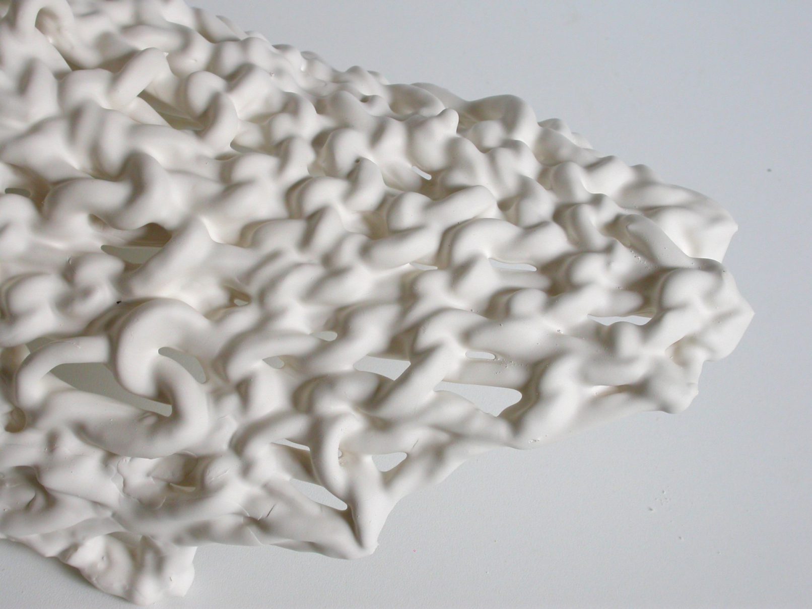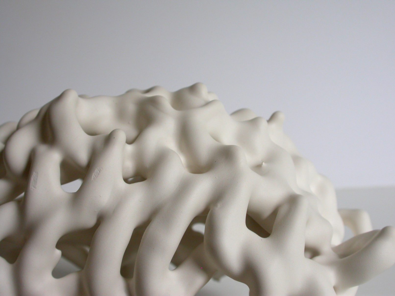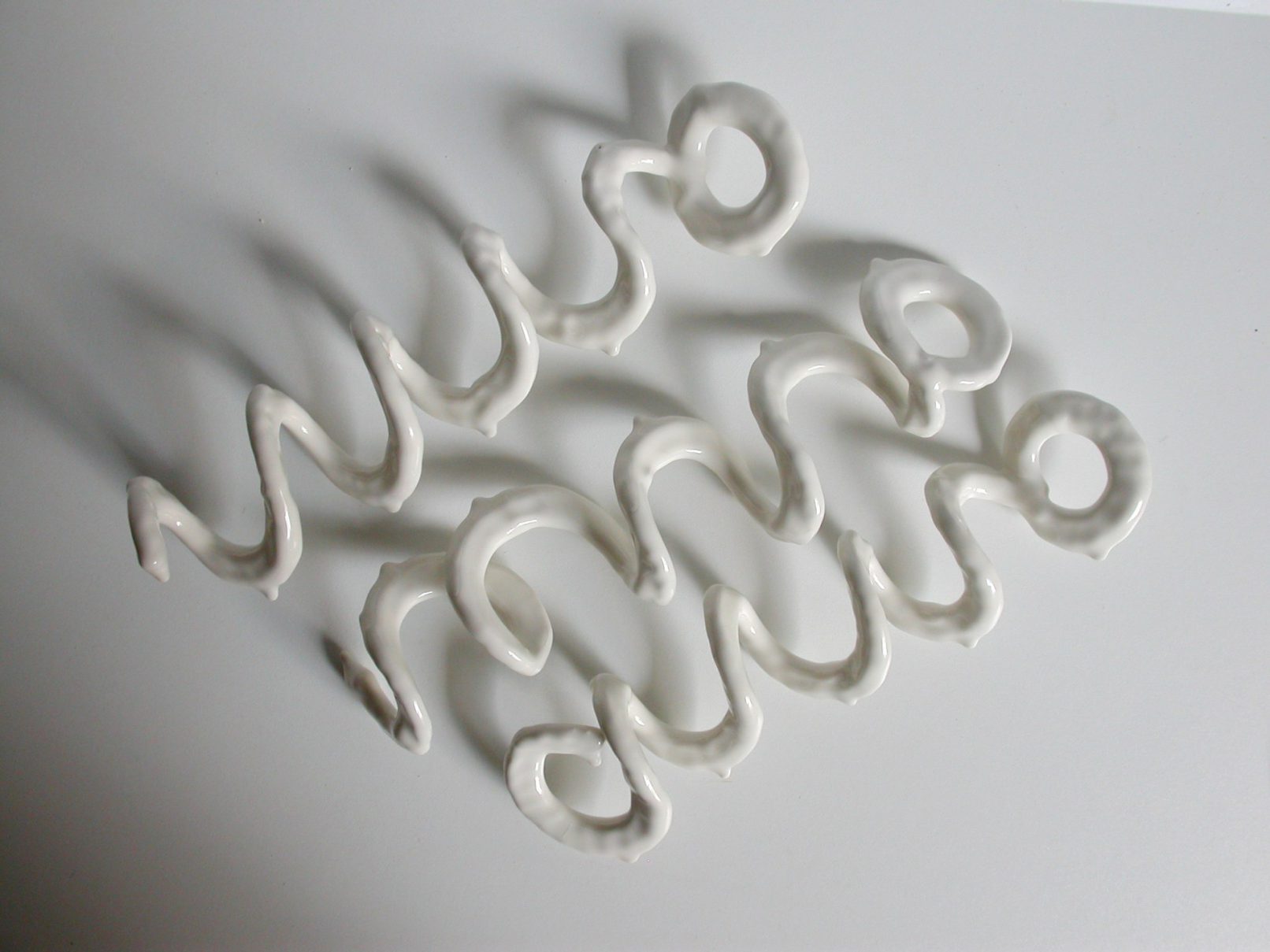 Fashion accessories in collaboration with Connie Groenewegen an Amsterdam based fashion designer. The accessories where worn during the Amsterdam fashion week 2009. The shapes where mainly made using knitting or very simple shapes that are formed during the making process of the ceramics by the weight of the clay.