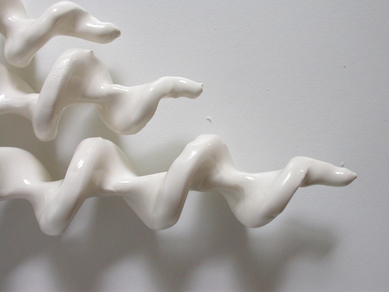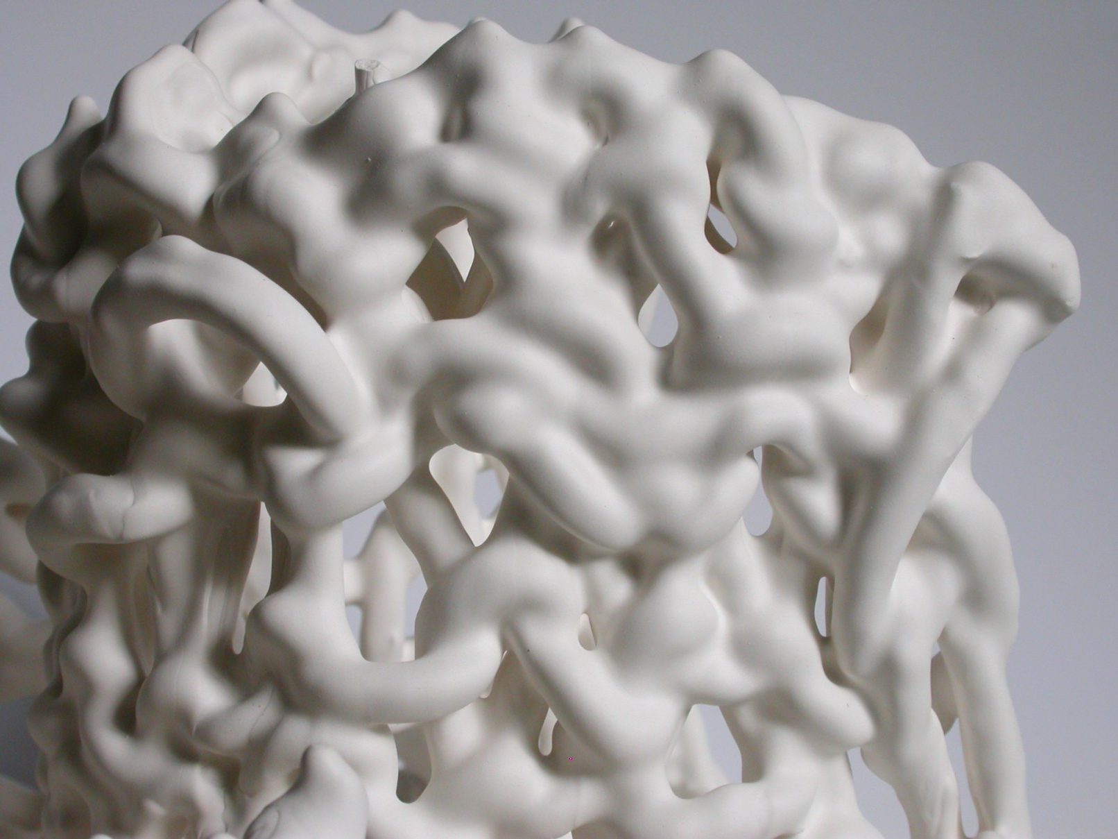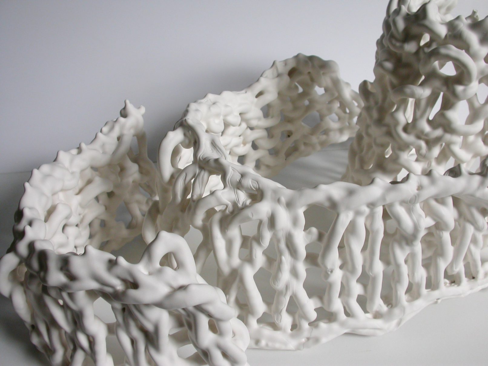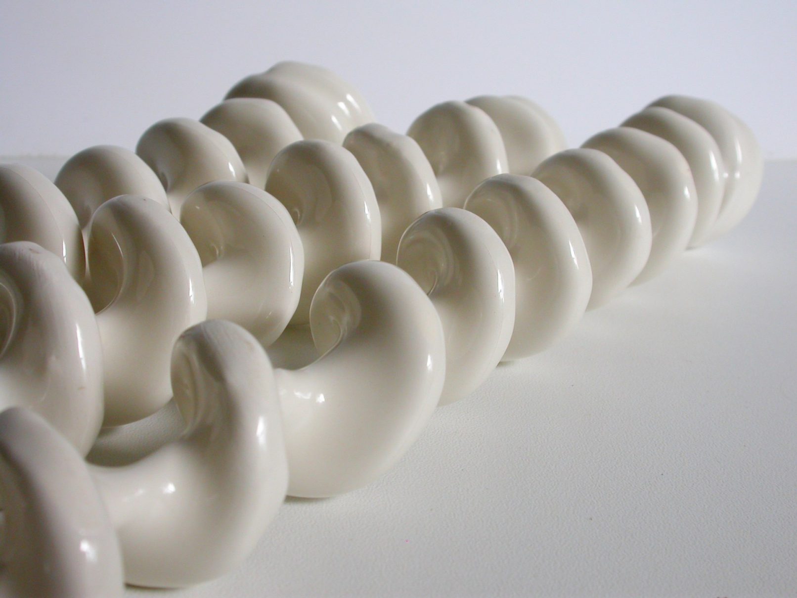 Fashion accessories in collaboration with Connie Groenewegen an Amsterdam based fashion designer. The accessories where worn during the Amsterdam fashion week 2009. The shapes where mainly made using knitting or very simple shapes that are formed during the making process of the ceramics by the weight of the clay.