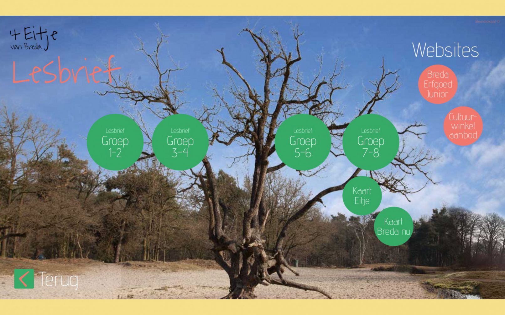 For the city of Breda together with Marja Reniers of Beeldlokaal.nl we developed a new educational system and materials about cultural heritage to be used by all the schools in the city region of Breda in the Netherlands. The curriculum exists of a diversity of creative learning processes where the teacher can work together with its class to learn more about the place they live in, and get connected with local cultural institutions to from a more intimate experience with their origins. With a digital interface that can played from the browser this story leads the class and their teacher into a topic around local cultural heritage and lets them explore a variety of times and places of the geographic area that they are growing up in.