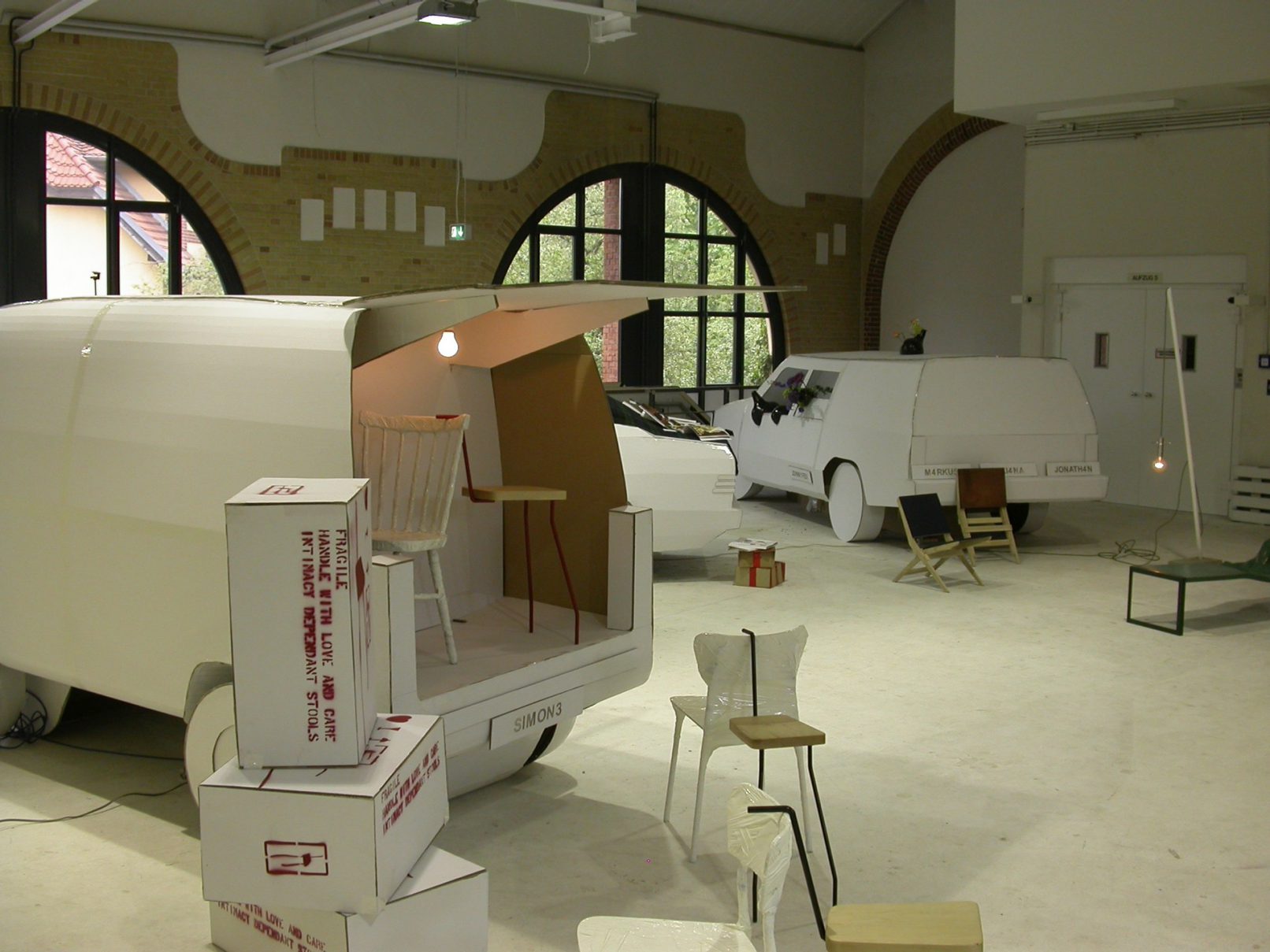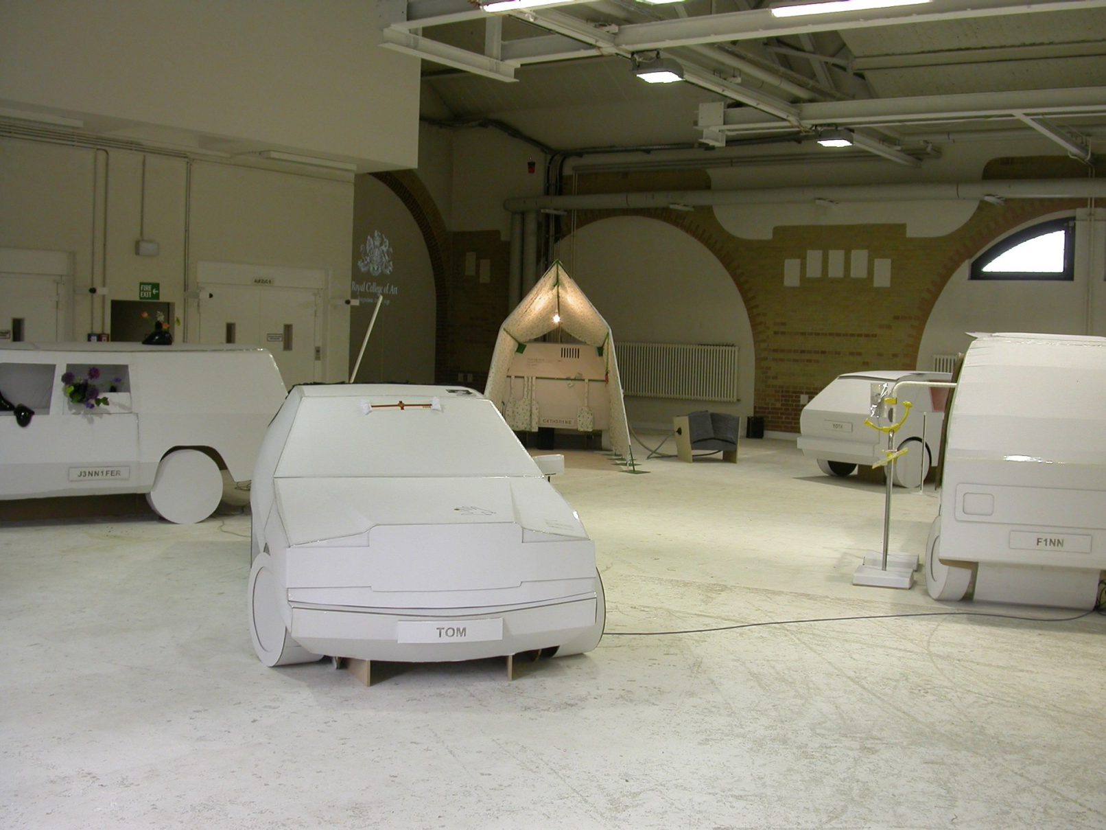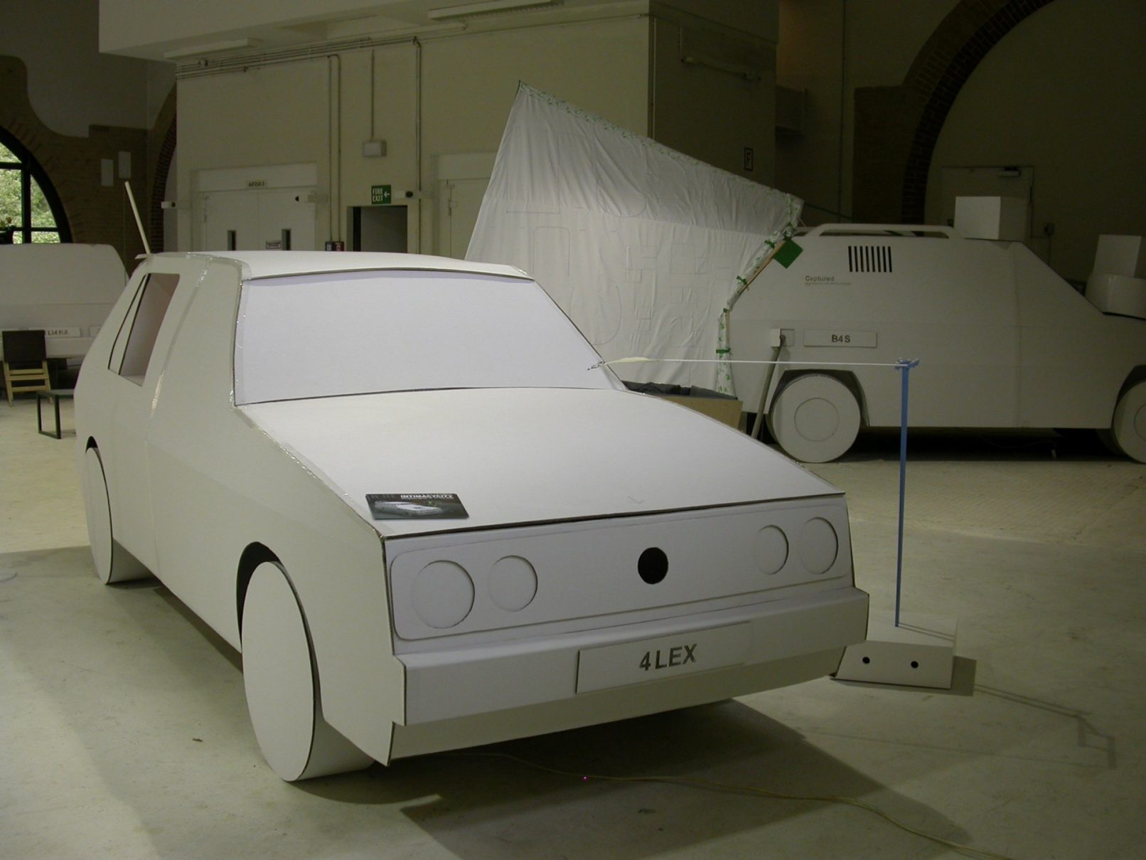 The exhibition will consist of six life-size cars (re-created in cardboard) within, around, and on top of which Platform8 will present their work.