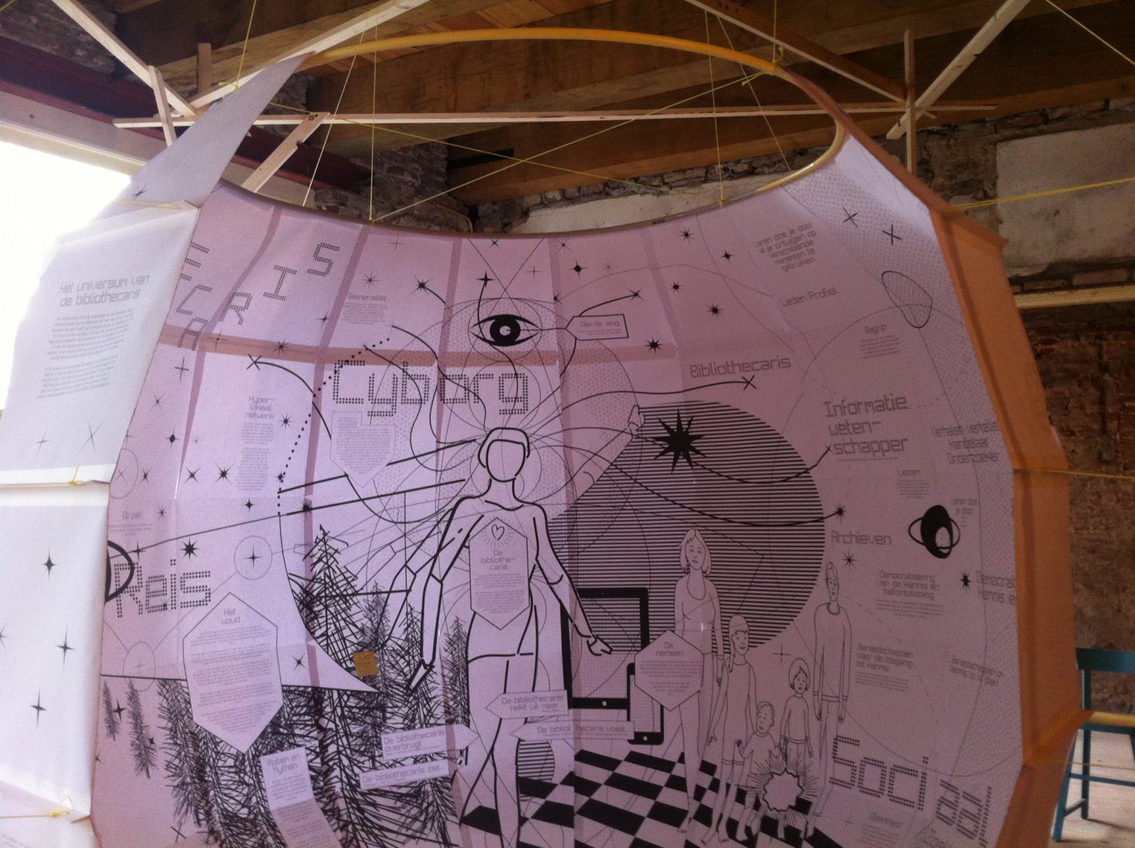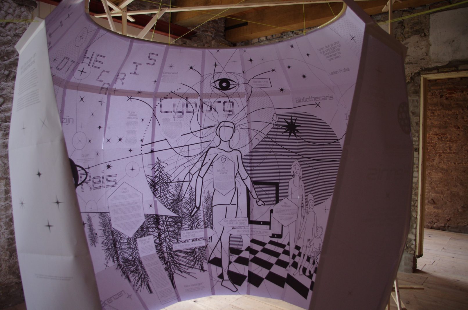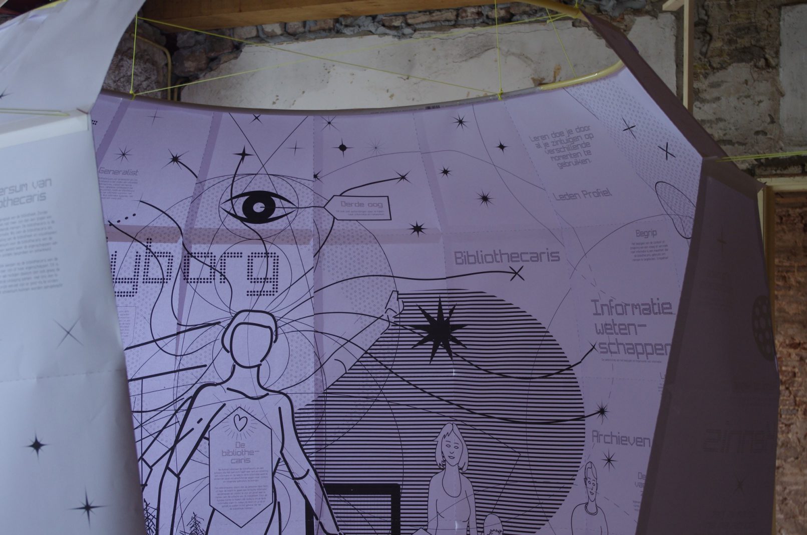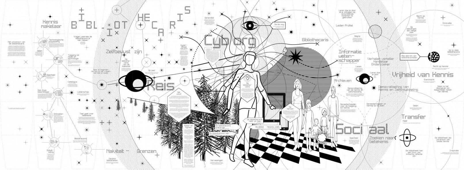 Starting with mapping and redefining the function of the librarian we created a research tool for the people of the city of Deventer and in specific the employees and board of the library to re-imagine the library, by looking past its physical qualities in to the universe of the librarian.